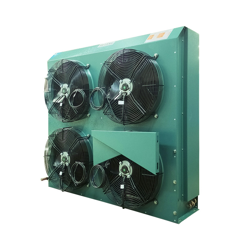 The air-cooled condenser is a type of heat exchanger used in refrigeration and air conditioning systems, and is widely applied in areas such as cold storage, ice making, chemical industry, and automotive air conditioning. Its working principle is based on the heat exchange mechanism, where the external air flow guided by the fan exchanges heat with the refrigerant inside. A standard air-cooled condenser typically consists of components such as condenser coils, fins, fans, frames and casings, motors and electrical control sections, which are closely integrated through the coordinated operation of these components. Our company can independently produce all the components and support the customization of some components to meet the precise demands of customers.