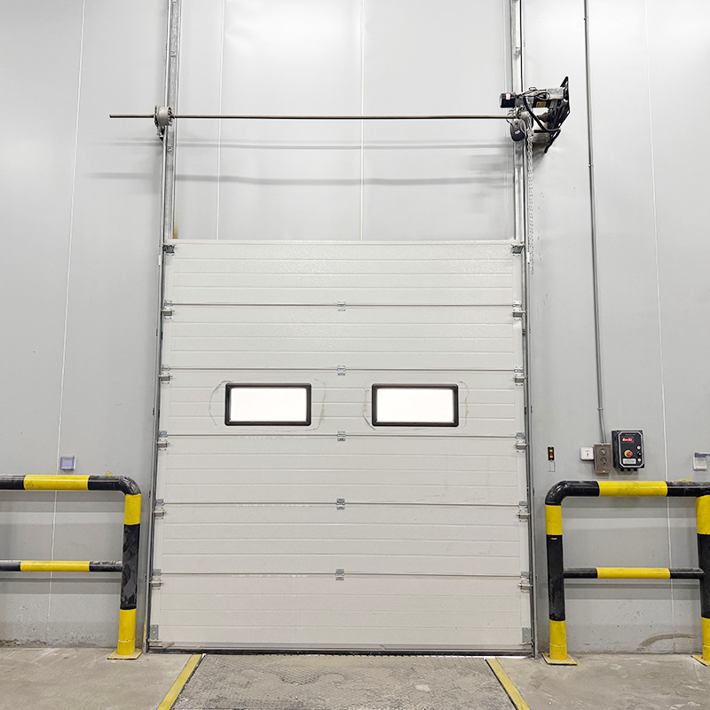 An industrial sectional overhead door is a vertically lifting industrial door composed of multiple insulated panels. The door opens by moving upward along the track and lying parallel to the ceiling, saving both interior and exterior space. It features excellent insulation, airtightness, durability, and smooth operation, making it widely used in factories, cold storage, logistics centers, and food processing facilities.